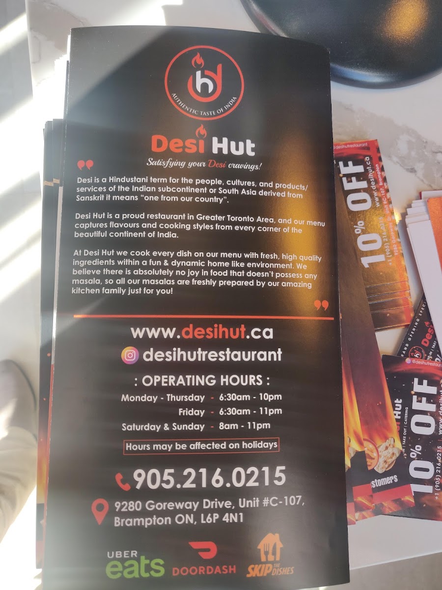 Welcome to Desi Hut, your go-to spot for authentic North Indian cuisine nestled in Brampton, Ontario. This charming establishment, situated at 9280 Goreway Dr, offers a delightful array of dishes that transport your taste buds straight to the bustling streets of Delhi.